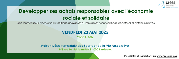 Dans le cadre de la Semaine des Achats Socialement et Écologiquement Responsables, le consortium PRASER (CRESS Nouvelle-Aquitaine, INAE et 3AR) organise une journée dédiée aux achats responsables et à l’Économie Sociale et Solidaire.