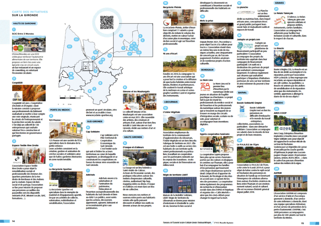 Voici les exemples de toutes les initiatives valorisées dans le Panorama ESS Gironde Bordeaux Métropole Edition 2021.