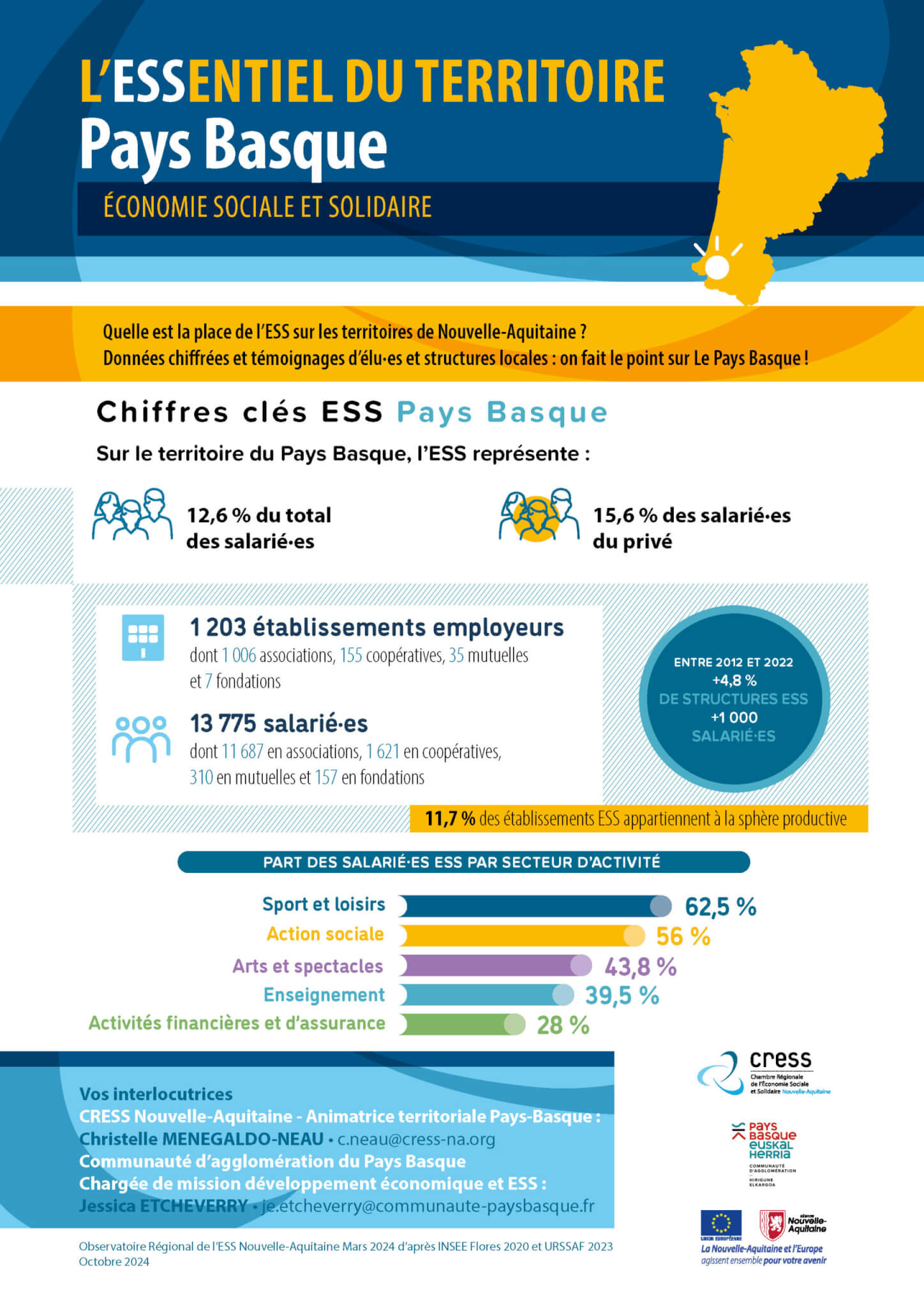 Le projet Interreg Poctefa JeunESS : la CRESS Nouvelle-Aquitaine fait partie du projet JEUNESS, projet qui vise à promouvoir l’Économie Sociale et Solidaire et l’entrepreneuriat coopératif pour améliorer l’employabilité et faciliter l’insertion professionnelle des jeunes dans l’espace transfrontalier du Sud Aquitaine, d’Euskadi et de Navarre.